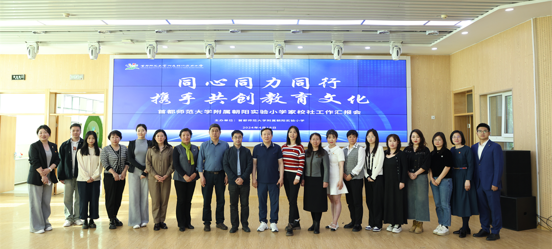 2024年4月18日,首都師范大學附屬朝陽實驗小學召開“同心同力同行 攜手共創(chuàng)教育文化”家校社工作匯報會。