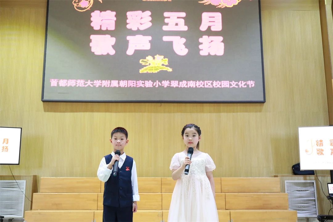 未來(lái)的日子里,翠南校區(qū)的師生們會(huì)在成長(zhǎng)的路上高歌猛進(jìn),去點(diǎn)亮未來(lái)無(wú)盡的可能。美麗五月,歌聲在校園中激蕩;美麗五月,笑容在鮮花中綻放。2024年5月28日,翠北校區(qū)成功舉辦了“精彩五月 歌聲飛揚(yáng)”校園文化節(jié)暨紅五月歌詠比賽。翠北學(xué)子們用嘹亮的歌聲,唱響“歌頌黨、歌頌祖國(guó)、歌頌家鄉(xiāng)、歌頌美好生活”的優(yōu)秀歌曲,唱響愛(ài)黨、愛(ài)國(guó)、愛(ài)社會(huì)主義的時(shí)代主旋律。本次活動(dòng)活動(dòng)分為兩場(chǎng),上午是三年級(jí)比賽,下午是四、五年級(jí)比賽。活動(dòng)主持人由三、四年級(jí)的同學(xué)完成。他們?cè)谂_(tái)上充滿(mǎn)自信,展示著附小學(xué)子的風(fēng)采三年級(jí)比賽現(xiàn)場(chǎng),一張張可愛(ài)的笑臉、一串串跳動(dòng)的音符、一陣陣清脆的歌聲,或甜美,或鏗鏘,或靈動(dòng),或輕揚(yáng),不僅展現(xiàn)了同學(xué)們朝氣蓬勃的精神面貌,更是唱出了他們對(duì)美好未來(lái)的憧憬向往。帶有設(shè)計(jì)感的隊(duì)形、別出心裁的道具、極具動(dòng)感的動(dòng)作,讓同學(xué)們的演唱和表現(xiàn)更加入情入境,打動(dòng)人心,贏得評(píng)委觀眾的陣陣掌聲!四、五年級(jí)比賽現(xiàn)場(chǎng),選手們身著富有創(chuàng)意的服裝,面帶自信的微笑,一一登臺(tái)獻(xiàn)唱。他們的歌聲或激昂高亢,或婉轉(zhuǎn)悠揚(yáng),或深情款款,或活力四溢,充分展現(xiàn)了青春的多彩與魅力。參與到其中的家長(zhǎng)代表也是毫不遜色,紛紛展現(xiàn)出自己的才藝,為整場(chǎng)活動(dòng)增光添彩。